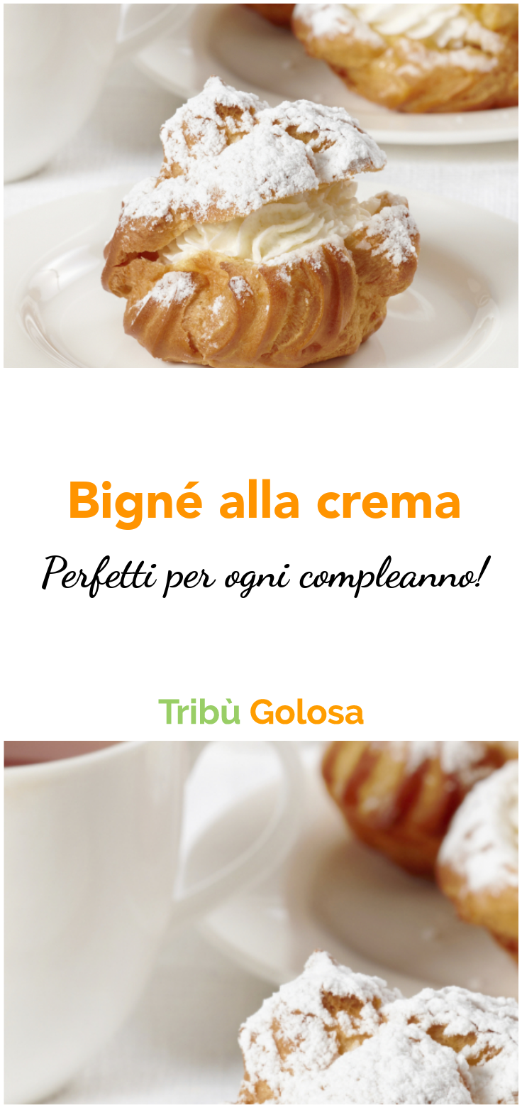 I bignè alla crema sono un classico della pasticceria. Deliziosi dolcetti di pasta choux ripieni di crema pasticcera, da degustare obbligatoriamente freschi.