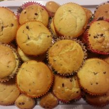 Rompete le uova in un'altra ciotola, unite lo zucchero, la farina, la farina di mandorle, il lievito; unite anche il cioccolato fuso e mescolate bene per amalgamare tutto. Versare l'impasto negli stampini da muffins coprendoli fino a metà, appoggiare una caramella mou su ogni muffins e ricoprire con dell'altro impasto, fino ad arrivare ai 3/4 dello stampino. Cuocere per 30 minuti a 180°.