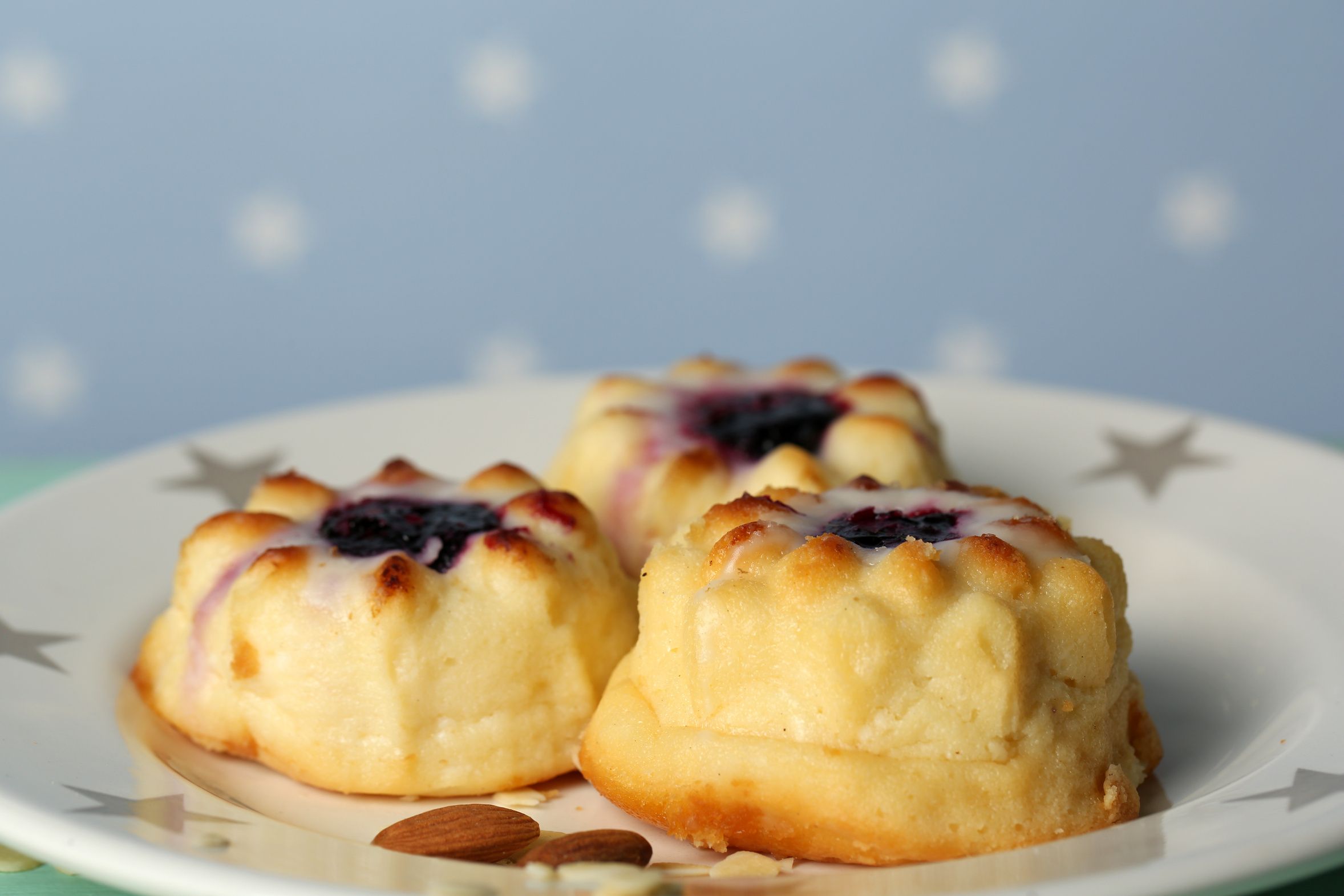 Mini cheesecake con marmellata di more, una versione monoporzione del delizioso cheesecake, con l’aggiunta di una goccia di marmellata di more per un sapore più intenso.
