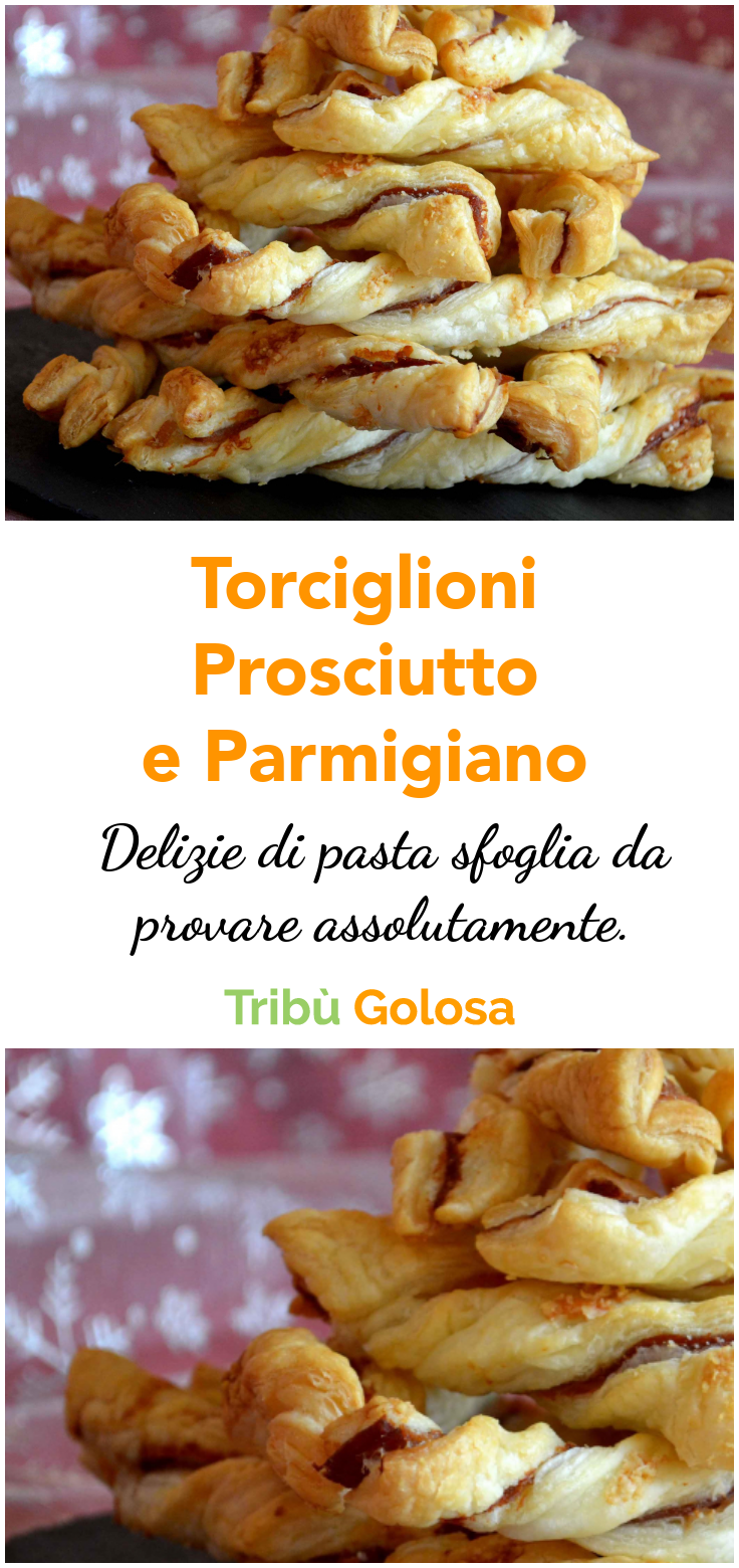 I torciglioni di pasta sfoglia con prosciutto e parmigiano, sono una ricetta veloce e saporita per il vostro aperitivo o per accompagnare una zuppa con un tocco di originalità.