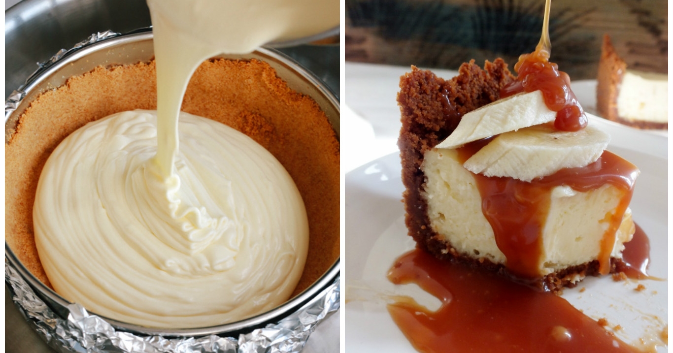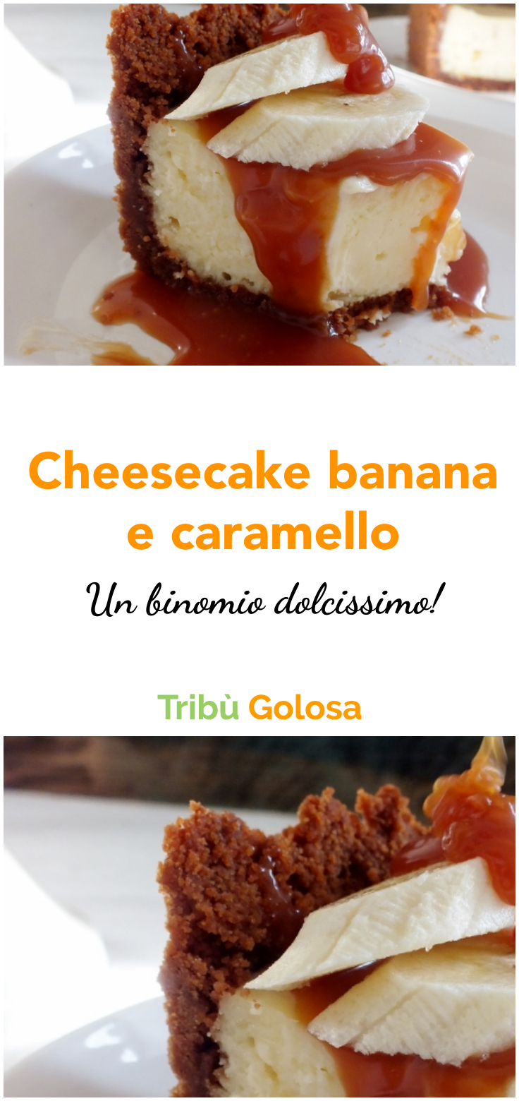 Cheesecake alla banana e caramello, una torta deliziosa con Philadelphia, caramello e banane mature. Il dessert ideale per terminare il pasto.