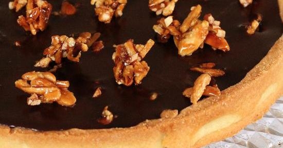 Torta al cioccolato con ganache al latte di mandorle e mandorle caramellate