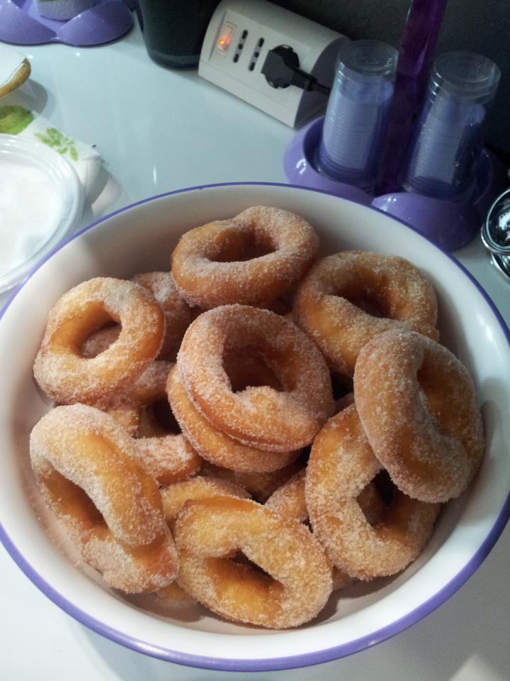 Infine friggere le ciambelline in olio ben caldo facendole dorare , ponetele su carta assorbente e passatele nello zucchero.
