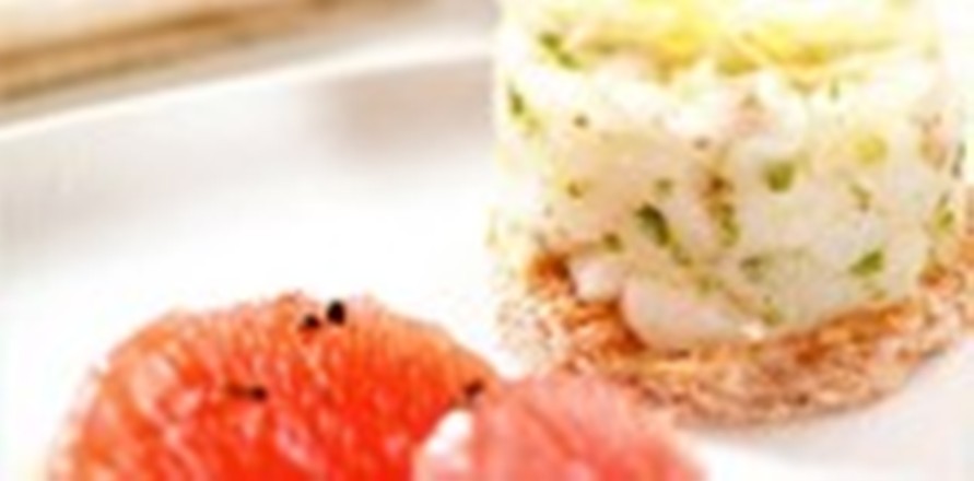 Ricava 2 dischi di pane con un tagliapasta e tostali in padella o nel tostapane. ungili con poco olio e metti sopra il pesce, sempre con l’aiuto del tagliapasta. Decora con le zeste di limone e servi accompagnando con il pompelmo condito con olio e pepe nero macinato.