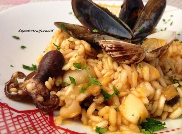 Il riso è un piatto che faccio molto spesso, sarà perché la mia dolce metà ne va pazzo ! Io invece adoro cucinare il pesce, pertanto non poteva mancare questa ricetta nel mio "archivio" virtuale !