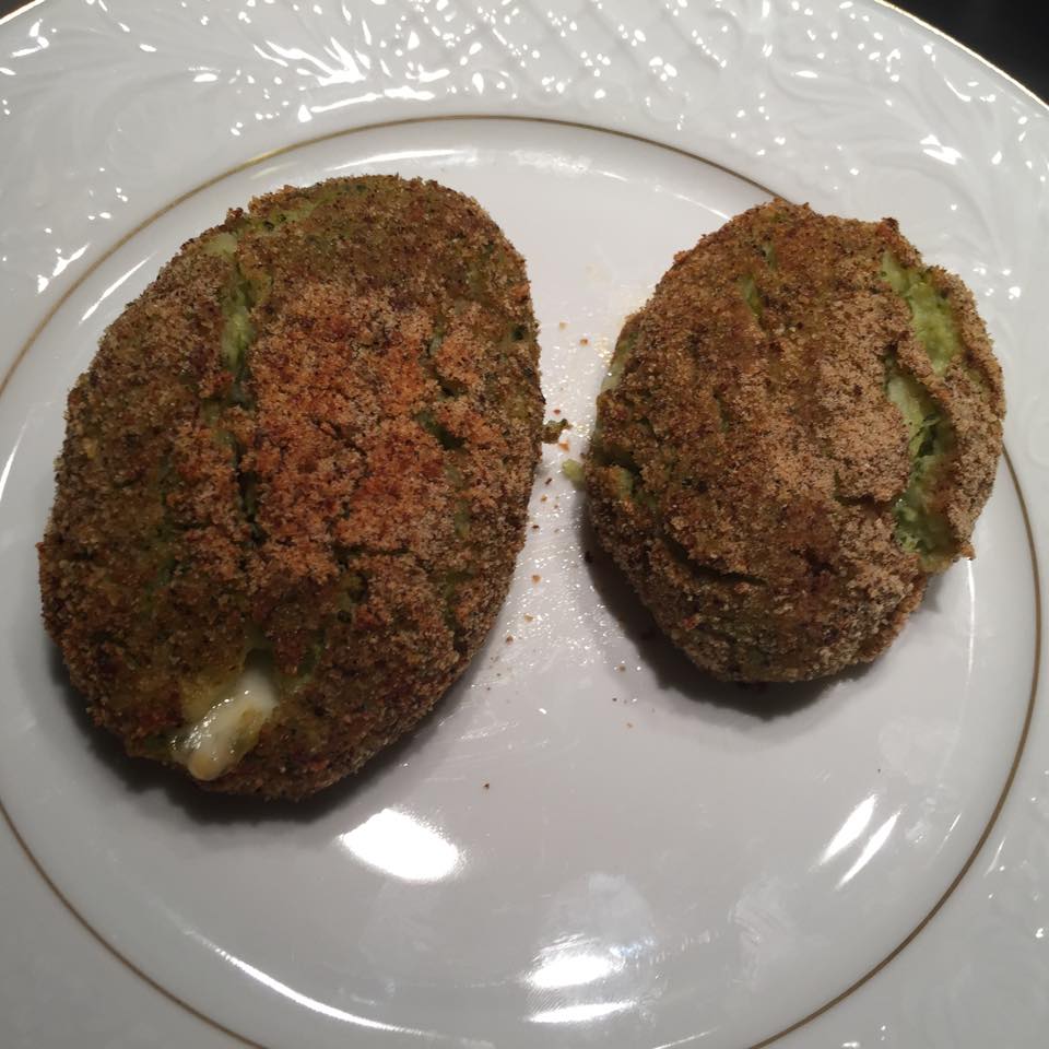 Bollire i broccoli e le patate per circa 30/40 min e poi schiacciarli e farli raffreddare; aggiungere l'uovo, il sale, pepe, un filo d'olio e amalgamare il tutto; fare delle polpette con le mani e inserirvi dentro qualche pezzo di scamorza; rotolarle nel pangrattato e adagiarle in una leccarda oliata o su carta da forno; aggiungere un filo d'olio e infornare a 200* per circa 25 min.