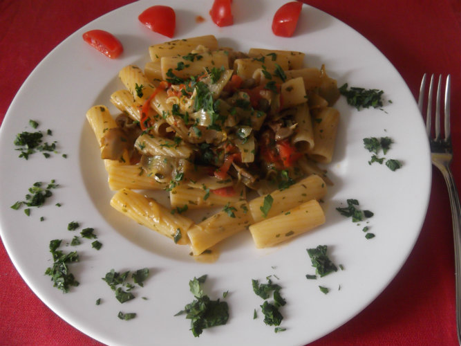 Scegliete una pasta corta di vostro gradimento (tipo penne o farfalle o sedanini), ma che sia di ottima qualità e consigliamo che sia cotta molto al dente e non troppo scolata.