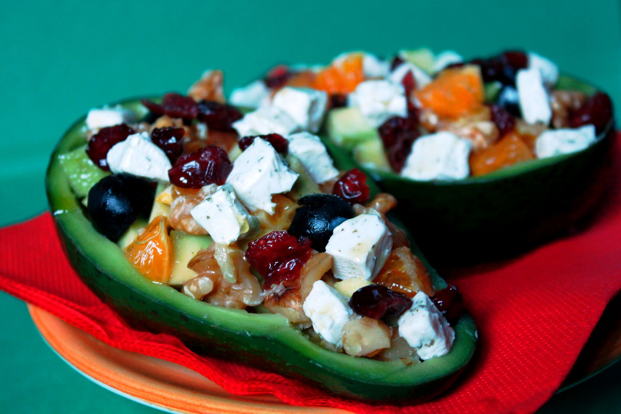 Aggiungere i mirtilli, le olive, il formaggio e i gherigli di noce tritati grossolanamente.