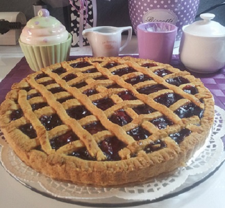 Per comodità stendo la frolla direttamente su carta forno con cui poi rivesto la teglia,farcisco con marmellata.