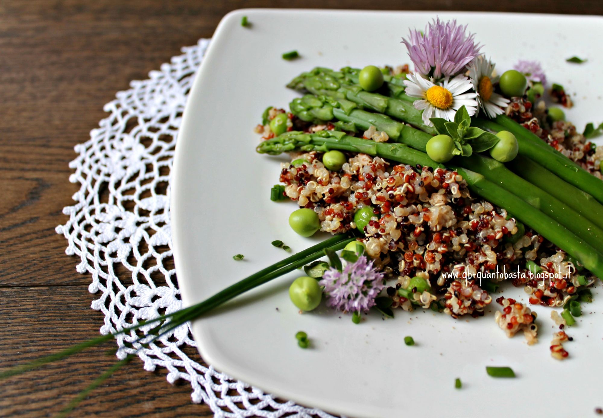 Insalata di quinoa con piselli, asparagi e tonno