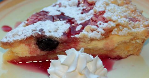 Coprire il fondo e il bordo della tortiera con parte dell'impasto premendo un pò affinchè si compatti. Versarvi sopra la farcia e guarnire con le amarene e un pò del loro sciroppo. Infine coprire con il restante impasto di briciole tutta la torta.