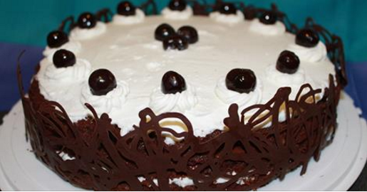 Tagliare una ventina di amarene a pezzetti e incorporarli a metà della panna fresca montata con lo zucchero a velo. Farcire il primo strato di torta. Il secondo strato viene farcito con la ganache al cioccolato fondente. Ricoprire la torta con la restante panna montata e decorare a piacere con cioffi di panna e amarene intere.