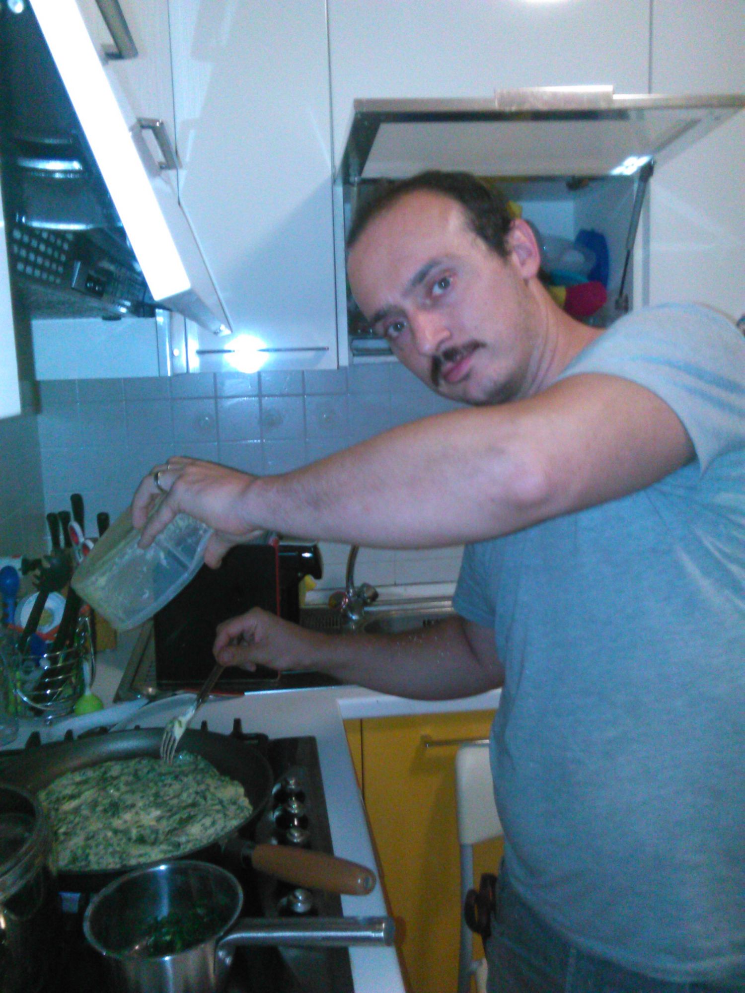 In una ciotola mettete 4 uova, gli spinaci (cotti precedentemente in un pentolino), il latte, la noce moscata, il parmigiano e il pangrattato. Aggiungete la giusta quantità di sale.