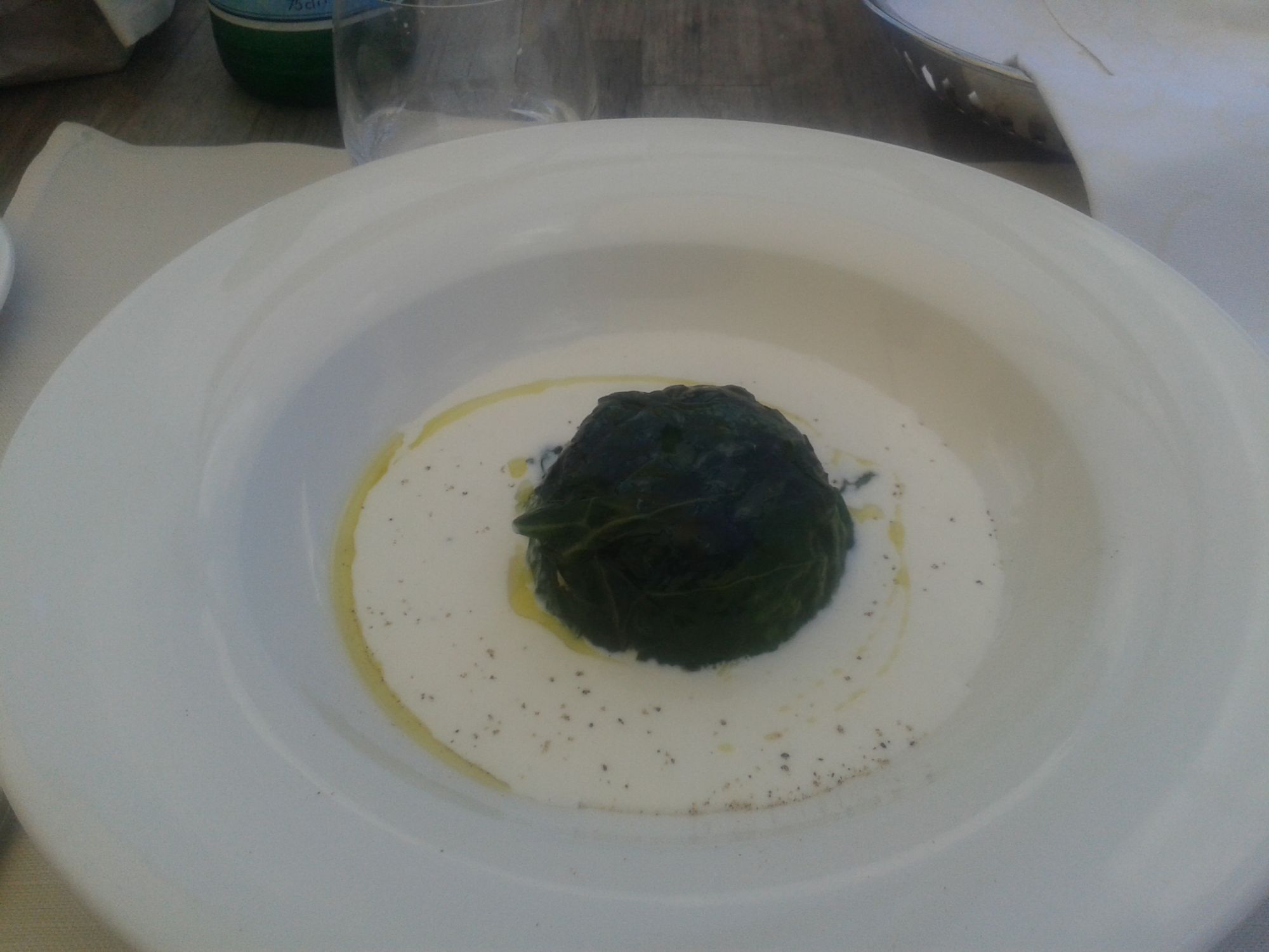 Una volta raffreddato tagliare a fette e ricoprirle con le foglie della bietola che avrete cotto.