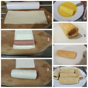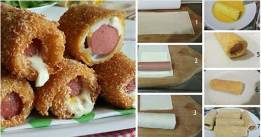 Prendete una fetta di pane da tramezzino, e assottigliatela delicatamente con un mattarello, quindi adagiate una fetta di formaggio in fondo, tagliate il wurstel a metà, posizionatelo orizzontalmente e arrotolate stringendo bene. Appena terminato il giro, tagliate con un coltello il pane in eccesso che vi servirà per fare un’altro cannolo.