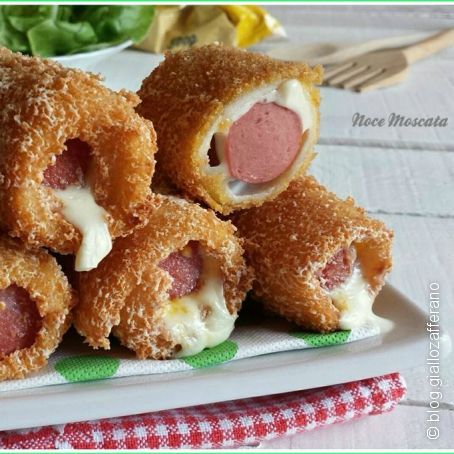 Buonissimi cannoli di wurstel e formaggio filante, preparati con il pane da tramezzino, serviti caldi super croccanti! Ogni morso è un CRONCH