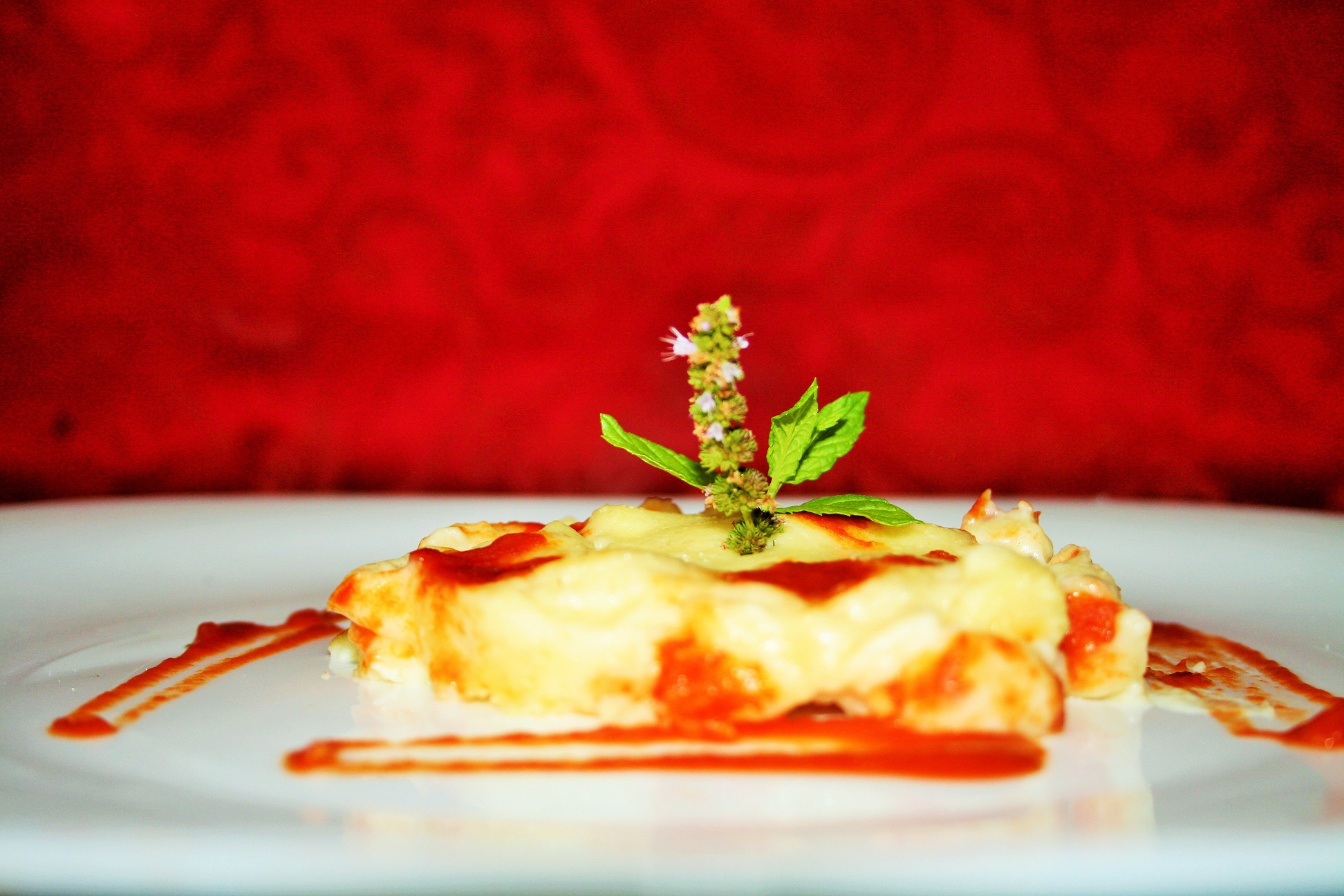 con l'aiuto di un coppa-pasta posizionate uno strato di gnocchi al centro del piatto, bagnate gli gnocchi e decorate il piatto con qualche goccia di pomodoro.