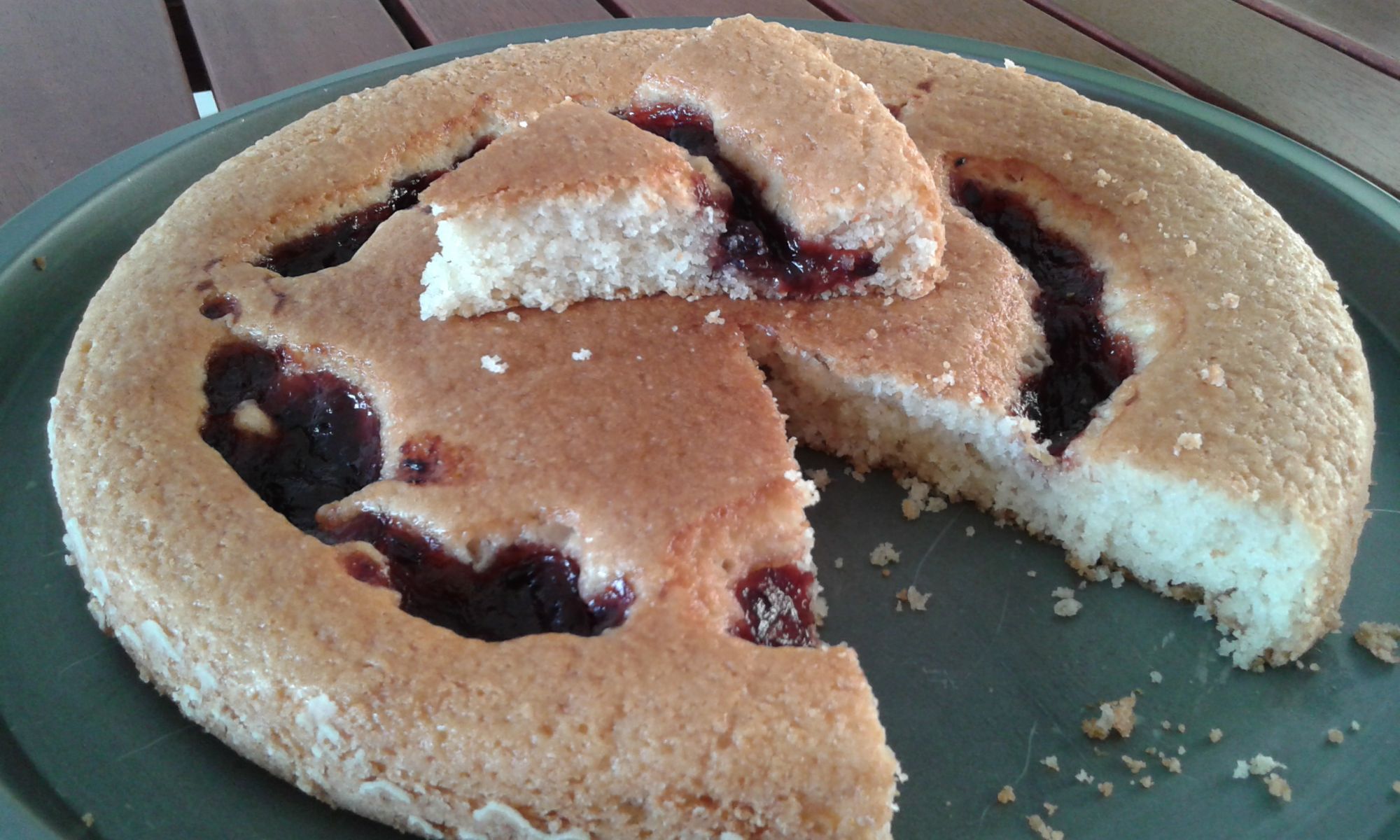 oggi però , non mi sono abbattuta , e ho buttato giù delle idee inventando una torta light , che porta il mio nome , senza burro e uova , e un po' di marmellata fatta in casa per renderla più golosa .