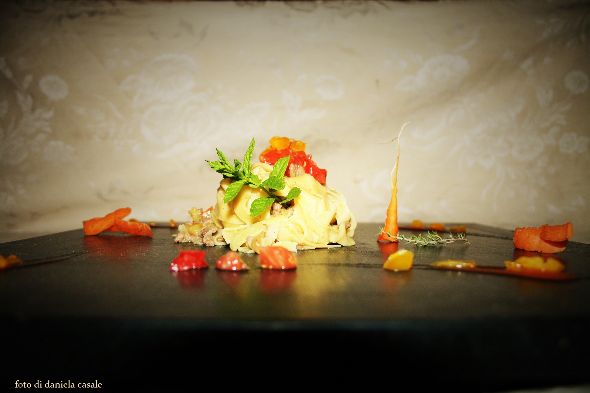 Più o meno tutti noi percepiamo il ragù come un condimento invernale, sarà per la lunga cottura, per il richiamo alle atmosfere domenicali d'inverno. Per questa ed altre ragioni... in estate, tengo in carta un ragù leggero, veloce e profumato da presentare a coloro che non sanno rinunciarvi.