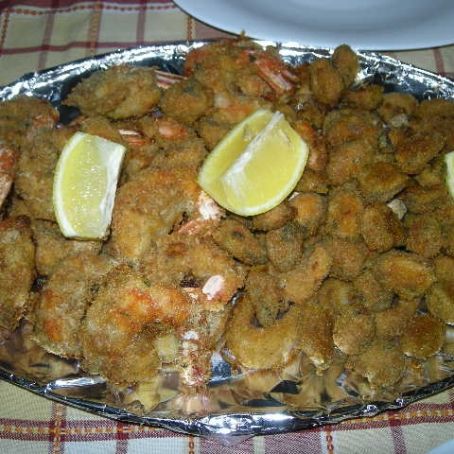 Adesso occupiamoci dei gamberi..che io impano con un mix di pangrattato e...COCCO RAPè...e si è questa la particolarità!!!;-)