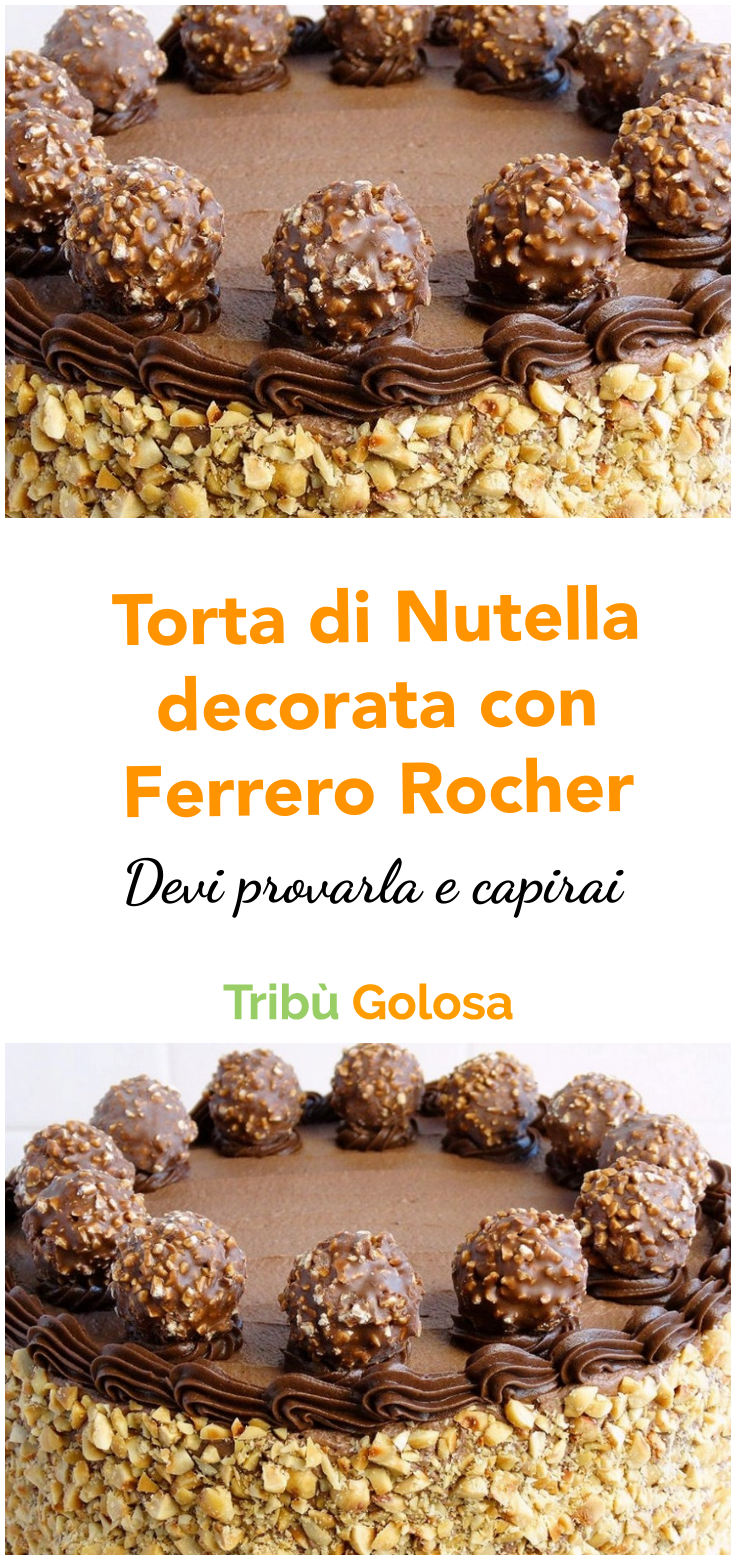 Soltanto quando la torta si sarà raffreddata per bene potrete tagliarla a metà e farcire l’interno della torta con la crema rocher.