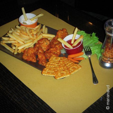 Sappiamo tutti che il fritto non e' in cima alla lista dei cibi salutari, ma questi bocconcini di pollo sono assolutamente da provare perche' sono veramente una squisitezza! E poi come si dice dalle nostre parti, in dialetto casentinese, "fritta l'e' bona anche 'na soletta"! I bocconcini, oltre che con le patatine, volendo possono essere accompagnati anche con delle verdure miste pastellate e fritte, con degli anelli di cipolla o di peperoni fritti, oppure piu' semplicemente con una bella insalata mista!