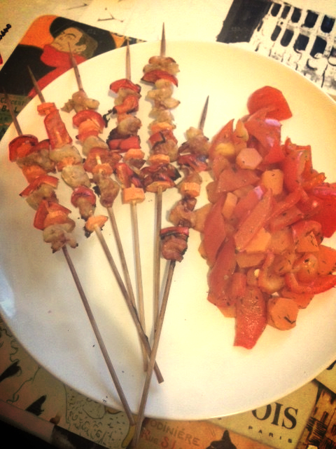 Spiedini pollo carote e peperoni