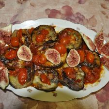 In un vassoio sistemate i tre tipi di antipasti. Decorate a piacere.