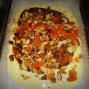 Spargete poi su tutta la superficie la frutta secca sminuzzata facendo attenzione a pressare affinche' si incastri bene fra il cioccolato. Mettete il composto in frigorifero e lasciatelo riposare per almeno un paio di ore in modo da fare ricompattare il tutto.