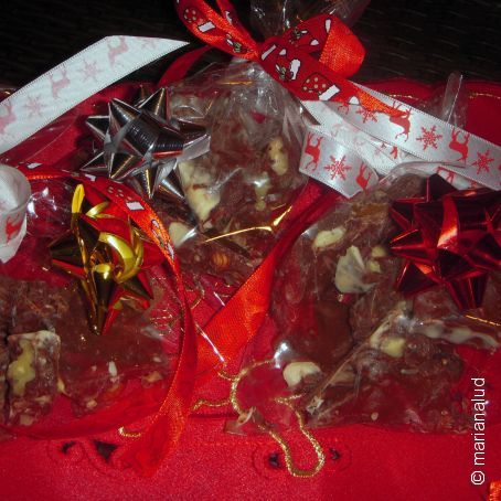 Credo che un dolce pensiero valga molto di piu' di un futile oggetto comprato perche' costretti da una ciclica ritualita' che si ripete ogni anno. Per questo motivo io, a ridosso delle feste natalizie, adoro dilettarmi con queste prelibatezze da regalare ad amici e parenti piu' stretti, perche' sono pienamente convinta che un pezzo di buon cioccolato porti con se allegria, spensieratezza e buon umore! Per far sciogliere il cioccolato fondente potete usare anche il microonde. Per quanto riguarda il cioccolato bianco fate attenzione poiche' quest'ultimo e' molto sensibile. Vi consiglio di aggiungerci anche dei mirtilli secchi che vi daranno un sapore inconfondibile insieme alla dolcezza del cioccolato. Mi raccomando, quando preparate questa ricetta, non pensate alle calorie!!!!