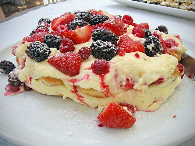 Una volta pronta la crema al mascarpone versate parte del composto sui savoiardi e cospargete con metà quantità di frutti bosco e metà di fragole. Preparate un altro strato di savoiardi, aggiungete il resto della crema e finite con i frutti di bosco e le fragole rimaste. Riponete il tutto nel frigo per almeno 3-4 ore oppure per un risultato più veloce riponetelo nel freezer.
