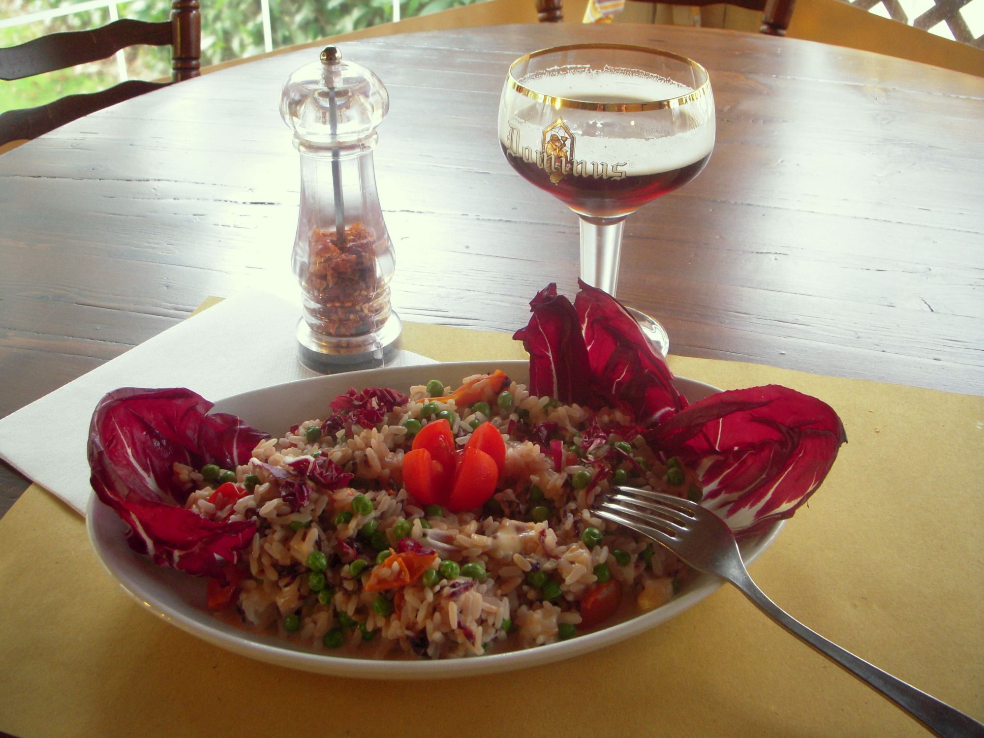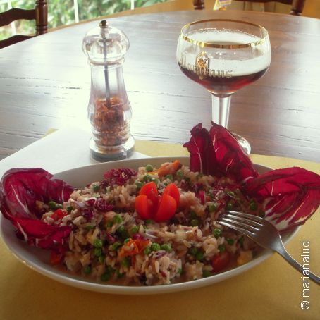 Per tutti gli amanti del riso, e non solo per i giapponesi, ecco un primo piatto da gustare, da soli o in compagnia, in ogni momento. Coloratissimo, mangiandolo avrete sempre la sensazione di stare partecipando ad una festa! Un primo piatto molto semplice da realizzare, ma anche molto gustoso e delicato. In questa ricetta, infatti, il sapore amarognolo e inconfondibile del radicchio si fonde alla perfezione con quello affumicato della scamorza. A chi pero' non piace il sapore affumicato della scamorza, consiglio di provare l'asiago, la fontina o del provolone dolce. Per quanto riguarda il tipo di riso, lascio a voi la scelta! Ognuno di noi ha il suo preferito. Ah! Me ne dimenticavo! Non e' che perche' si chiama Risotto Primavera si deve aspettare la primavera per mangiarlo!!!