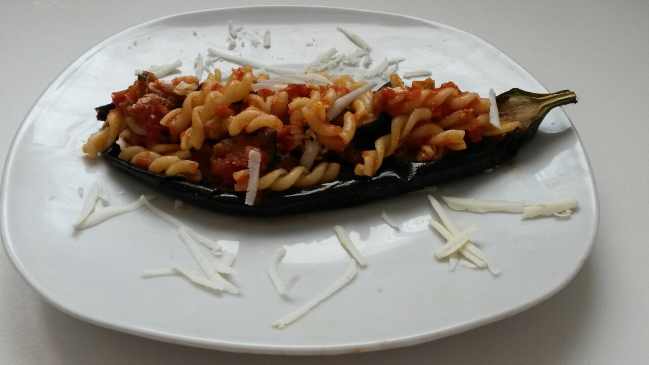 Facciamo cuocere intanto la pasta, una volta pronta scolatela, aggiungete la passata e i cubetti di melanzana, girate bene il tutto e riponetele nelle barchette.