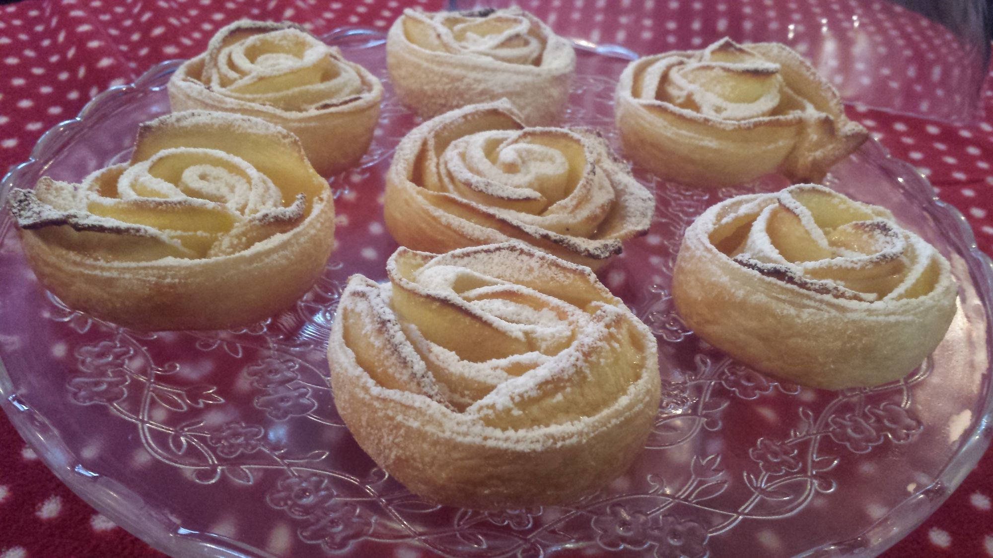 Arrotolare la strisciolina su se stessa e ne otterrete una rosa, continuare così fino a finire la sfoglia e appoggiarle sulla carta forno. Cuocerle fino alla doratura, ovvero a 180° per circa 15 minuti e farle raffreddare. Cospargetele di zucchero a velo...e gustatene quante ne volete!