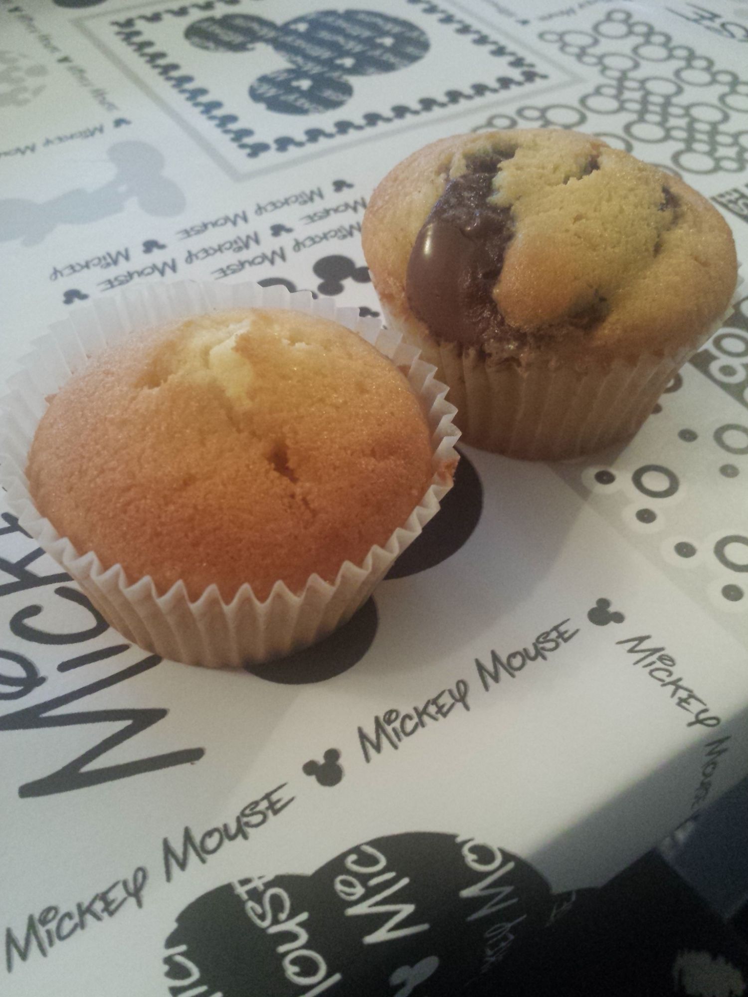 Versatene fino a metà pirottino, metteteci sopra un cucchiaino di Nutella o di marmellata e ricoprite con un pochino di impasto..io ne ho fatti 6 di un gusto e 6 nell’altro. infornate a 160° (io uso il ventilato) per 15 minuti e son pronti da gustare
