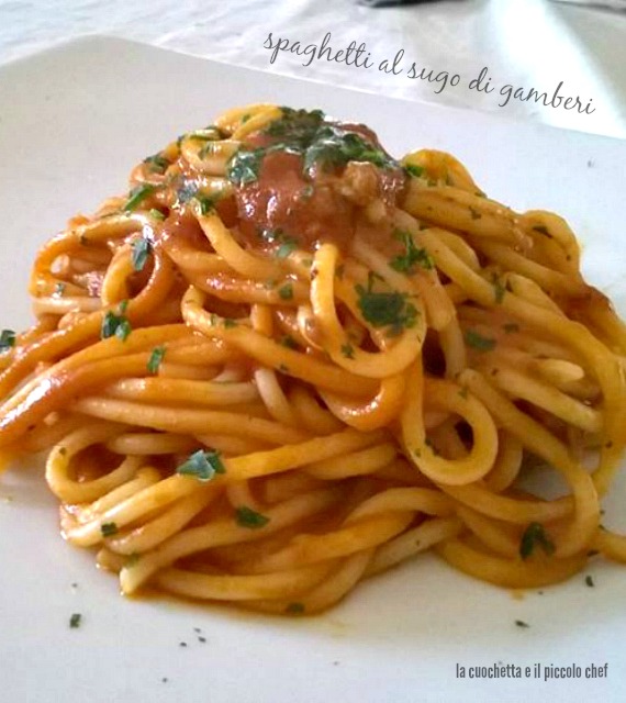 Lessiamo gli spaghetti in abbondante acqua bollente salata e scoliamoli al dente, tenendo da parte un mestolo di acqua di cottura, una volta scolati trasferiamo gli spaghetti direttamente nella casseruola con il sugo, mescoliamo bene, aggiungiamo qualche cucchiaio di acqua di cottura della pasta e spolverizziamo il tutto con prezzemolo tritato a piacere.