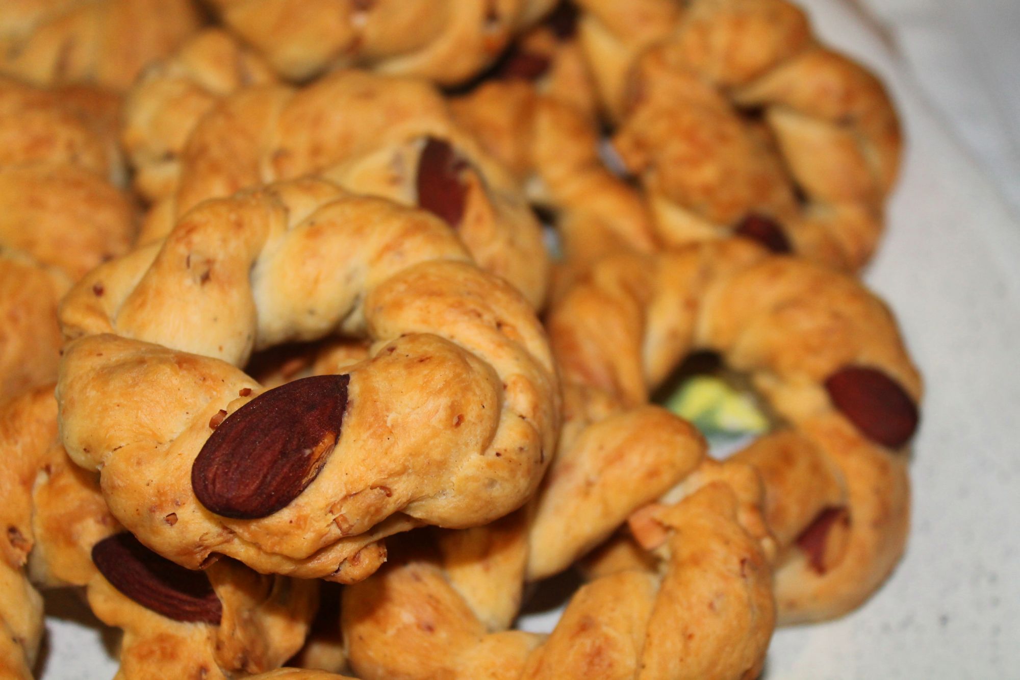 Bagnare qualche mandorla intera e usarla per decorare i taralli.