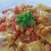 Agnolotti con pomodorini, melanzane e menta