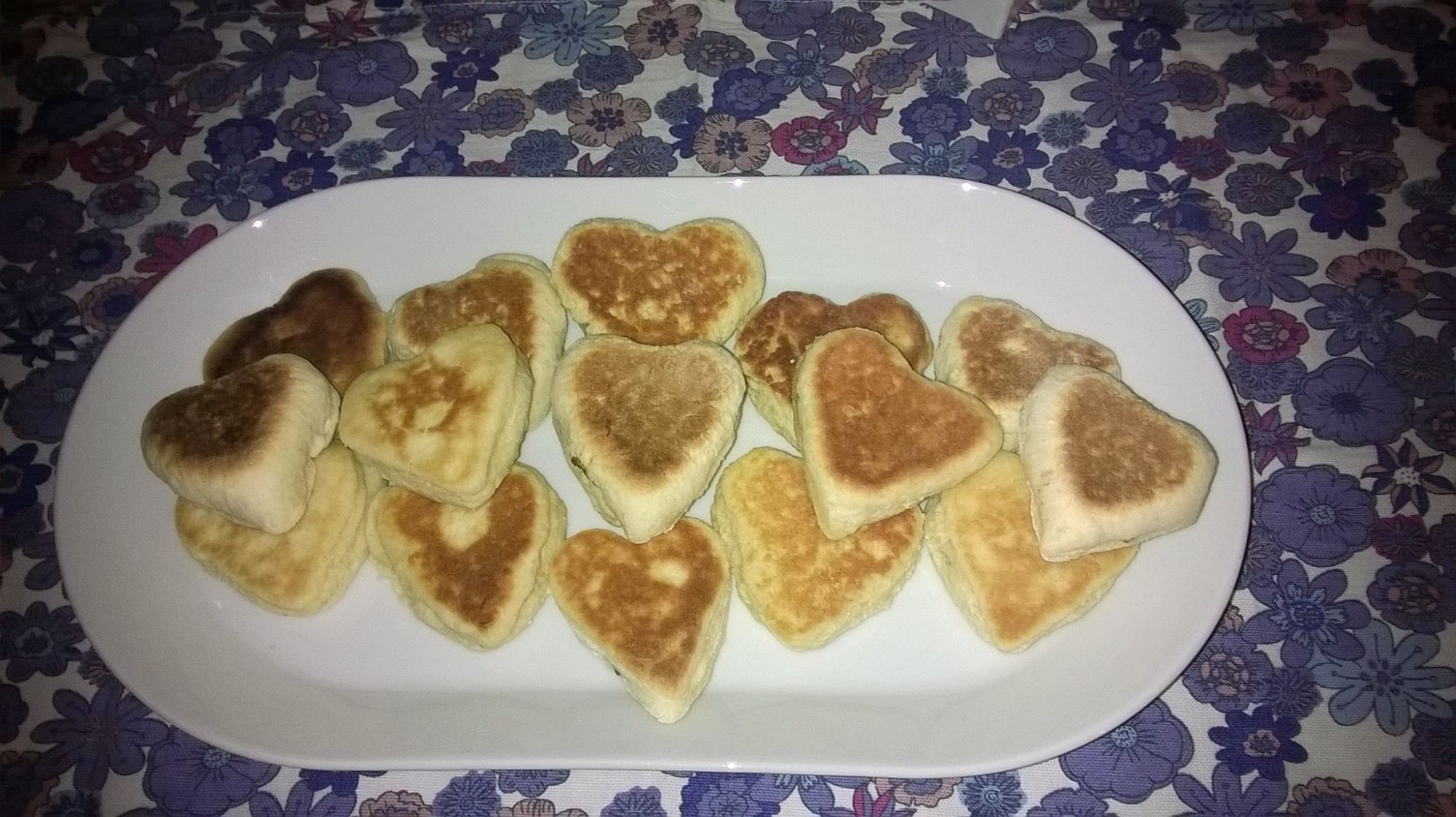Uso la carta forno per stendere il panetto ottenuto...lo stendo circa 2-3 millimetri. Ricavo delle formine tonde o a cuoricini come ho fatto io, da una parte metto un cucchiaino di nutella, e con un altro disco chiudo, facendo attenzione a chiudere bene i bordi.