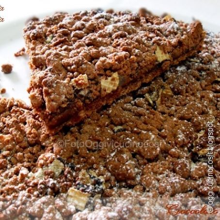 La Torta Sbriciolata Moretta con crema al cioccolato e pere, ha un guscio croccante al cioccolato, ripiena di crema al cacao, con nocciole, pere e wafer, profumata al rum e amaretto. Ideale per la colazione e la merenda.