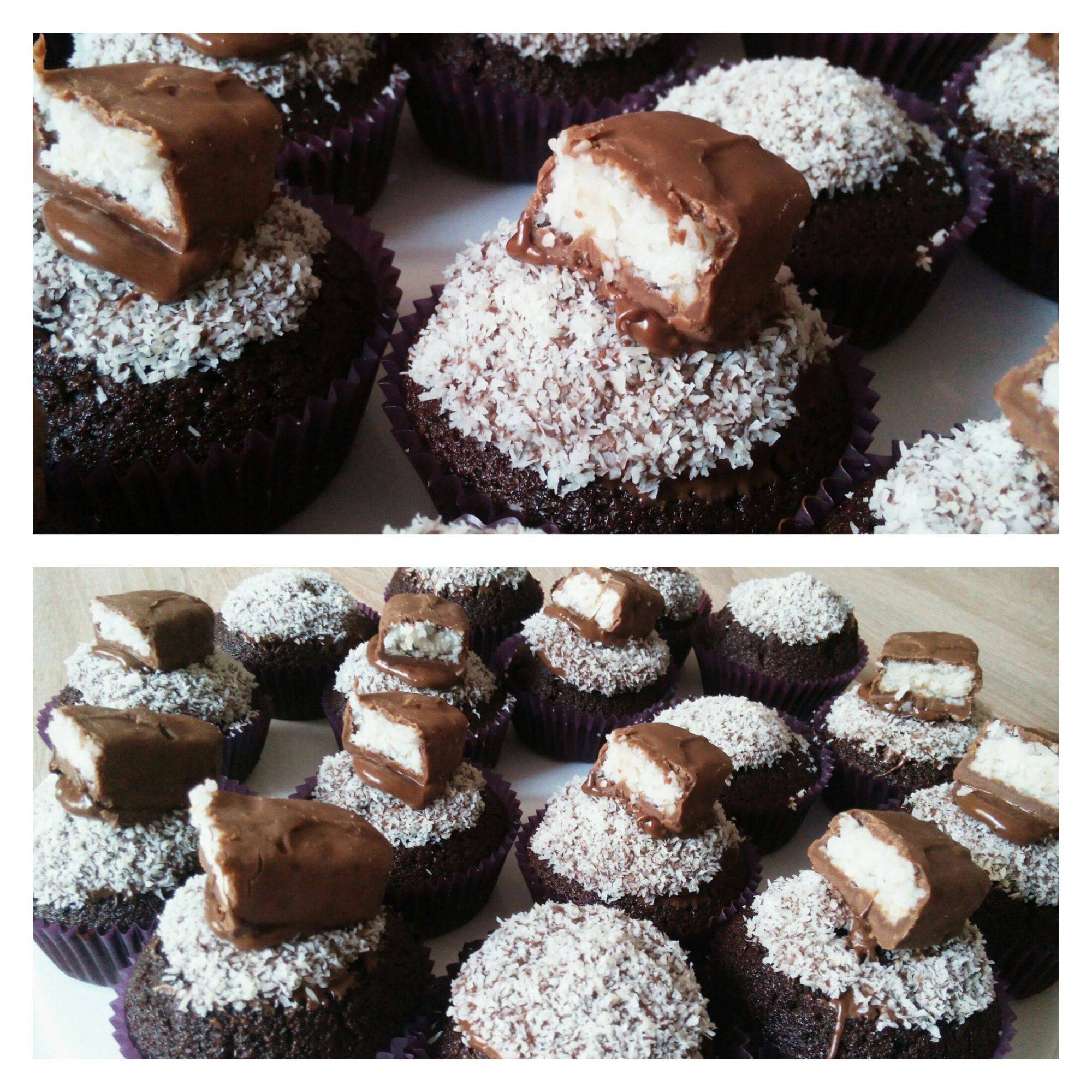 Un ottimo abbinamento per gli amanti del cocco: cupcake al cioccolato con glassa alla nutella,cocco e un golosissimo dolcetto al cocco!!