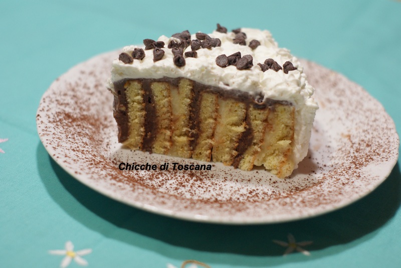 Una torta a strati con crema al cioccolato fondente ed al cioccolato bianco: ottima, conquista i bambini grazie alla sua crema golosissima. Gli strati composti da biscotti secchi bagnati nel latte la rendono morbida e delicata.