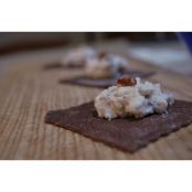 Adagiare la ricotta precedentemente preparata su ogni quadrato e aggiungere le nocciole tagliate in precedenza.