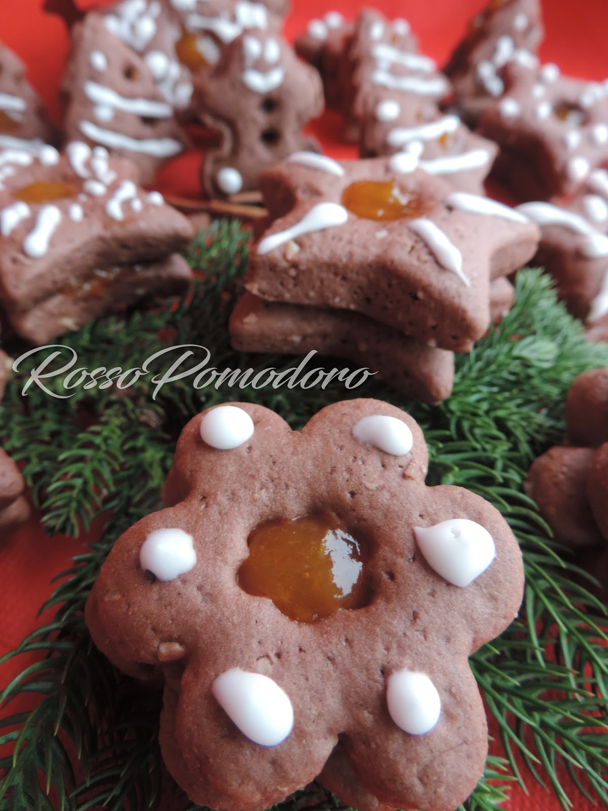Deliziosi biscottini austriaci con frolla al cacao e mandorle aromatizzata alla cannella e farciti con marmellata di arance.
