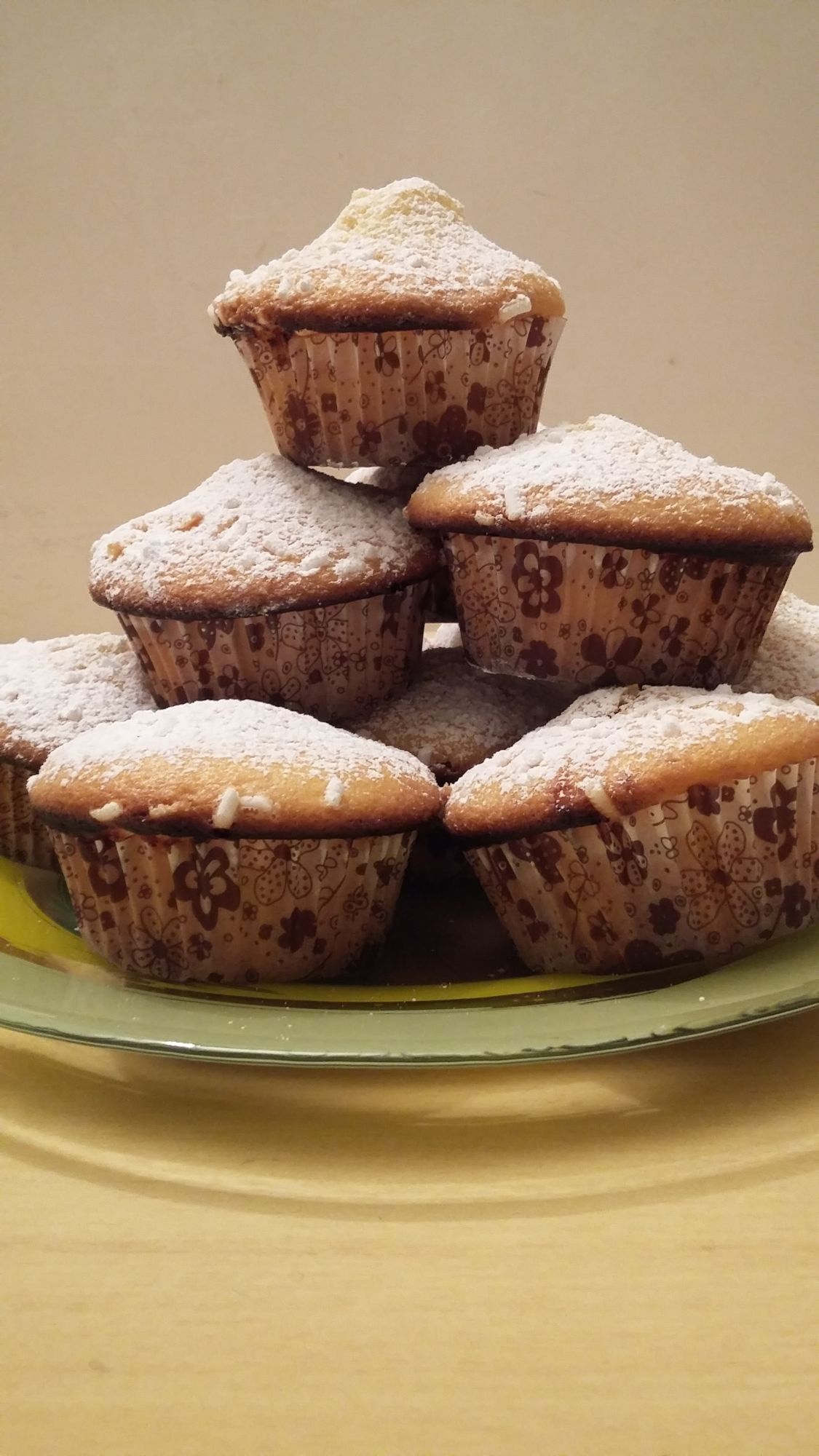 A questo punto, trasferite i muffin in forno già caldo e cuoceteli a 180° per 18 minuti. Appena cotti, lasciateli raffreddare un poco e dopo cospargeteli con zucchero a velo.