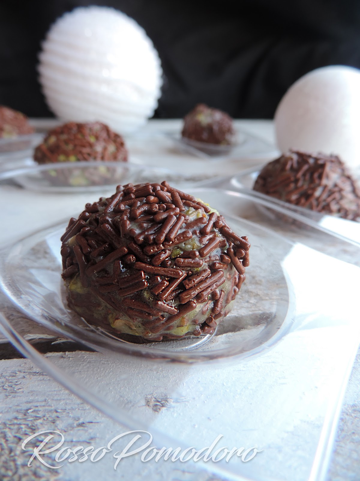 Formare delle palline grandi come noci e ricoprirle con codette di cioccolato.
