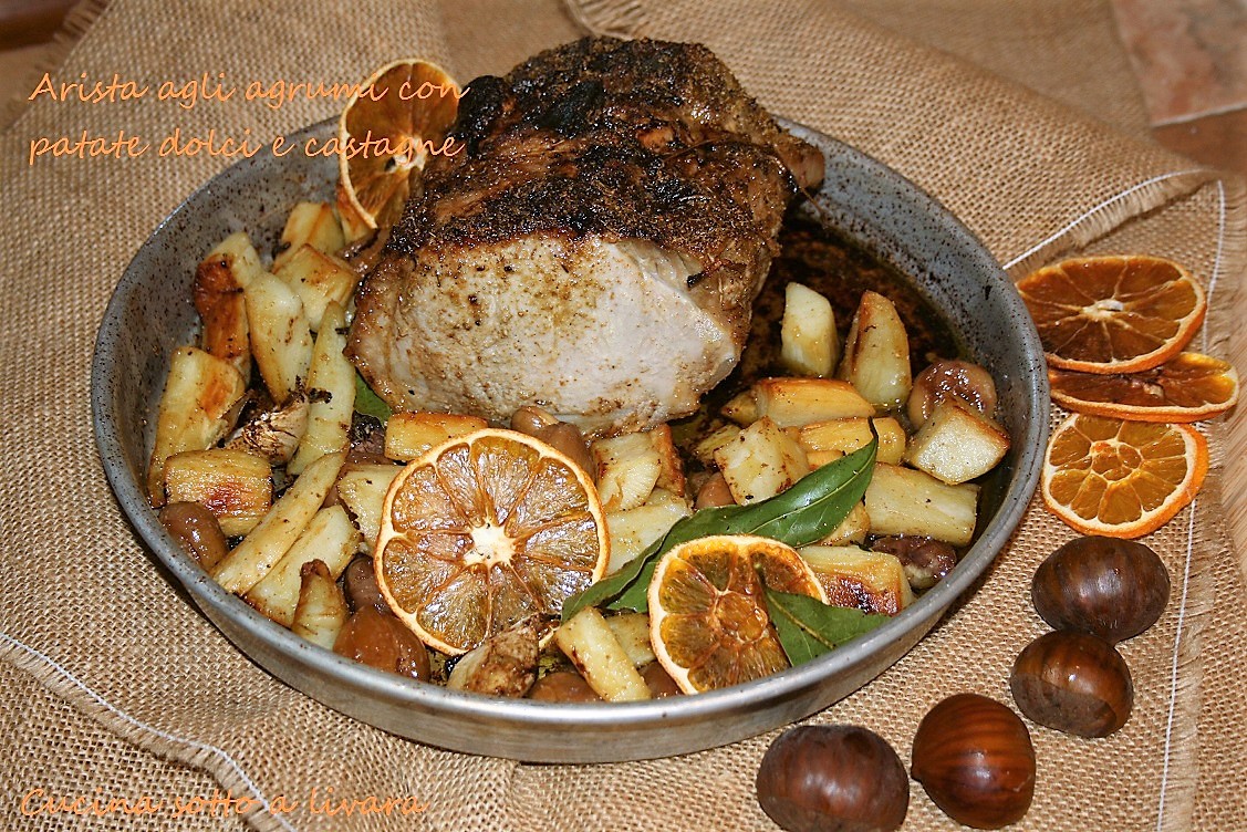 Mettete in forno a 160° per circa dieci minuti ,poi , riprendete la teglia aggiungete le patate e le castagne , sistemate di sale e pepe.