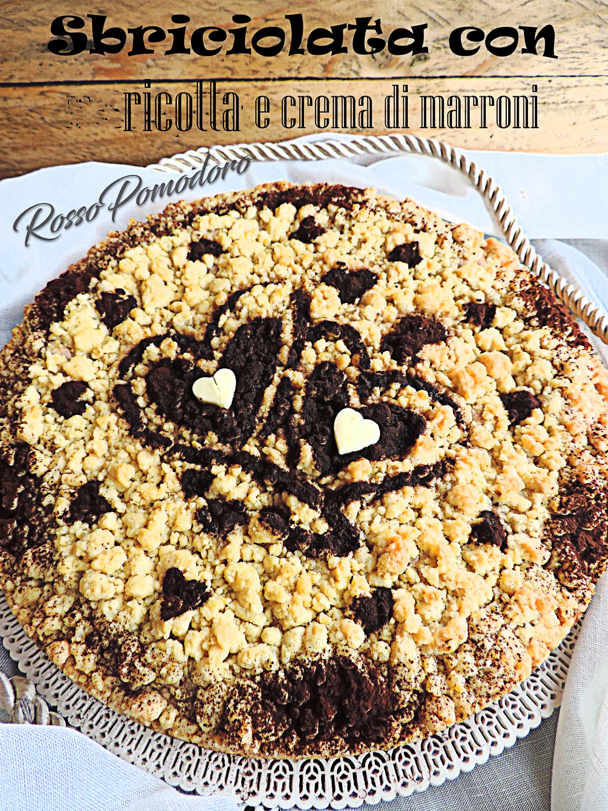 Golosa e cremosa sbriciolata con ricotta, crema di marroni e gocce di cioccolato. Perfetta come dessert, ottima a colazione e merenda.