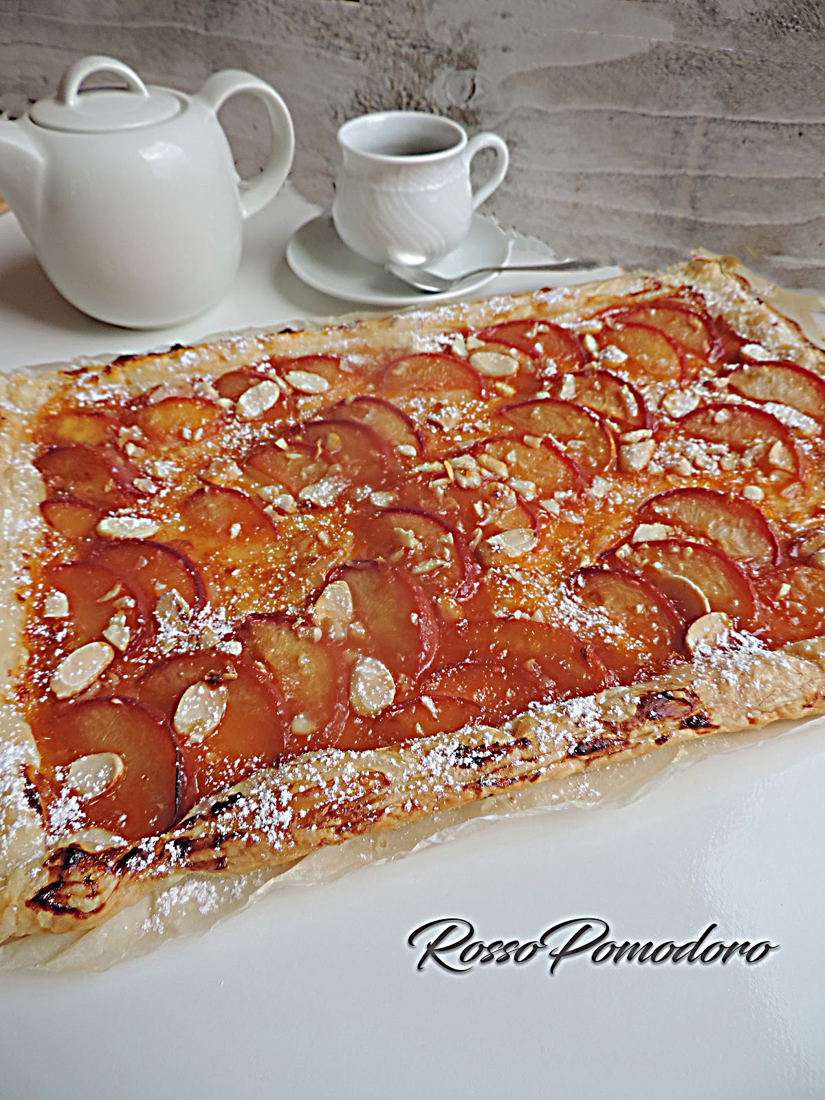 Gustosa torta sfogliata farcita con marmellata e mandorle.