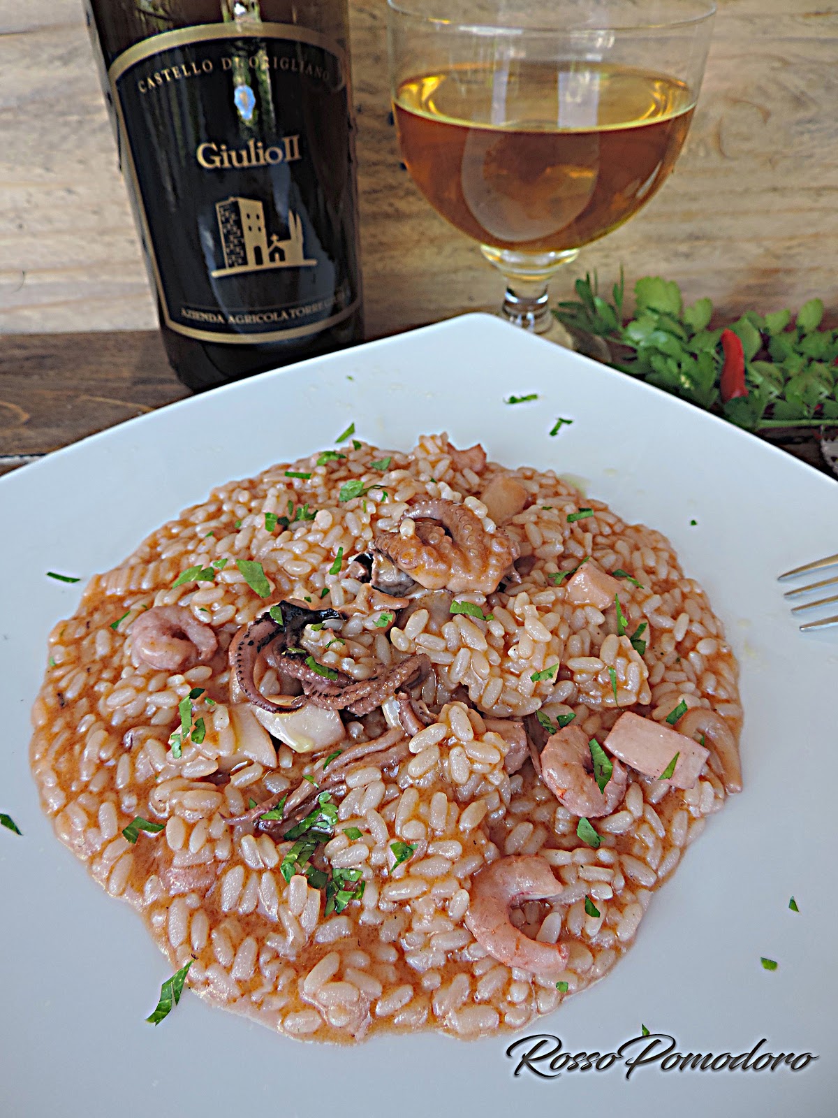 Gustoso e saporito risotto di mare con moscardini, gamberi e calamari.